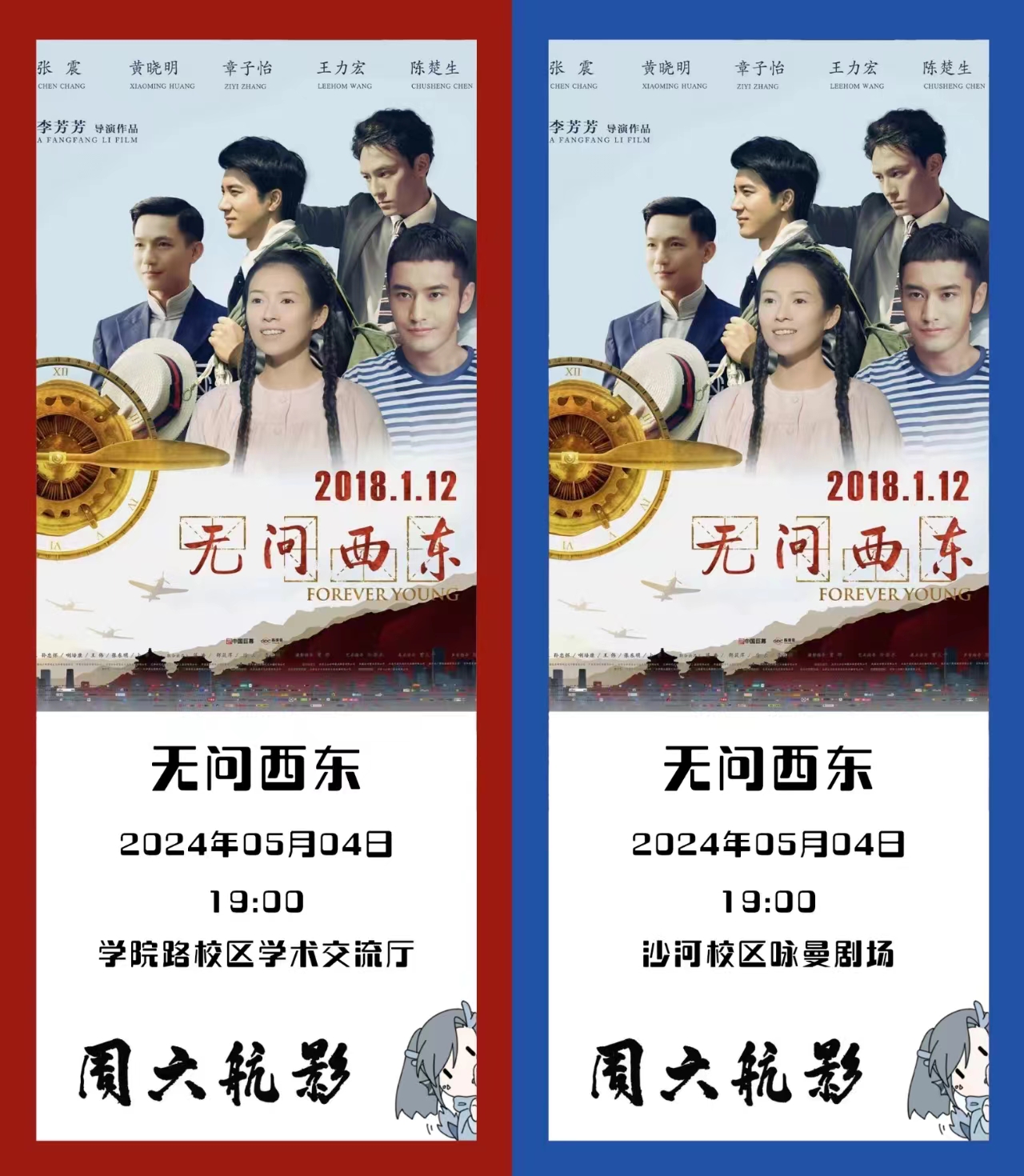 5月4日(周六)19:00,学院路校区学术交流厅,沙河校区咏曼剧场,同步放映!