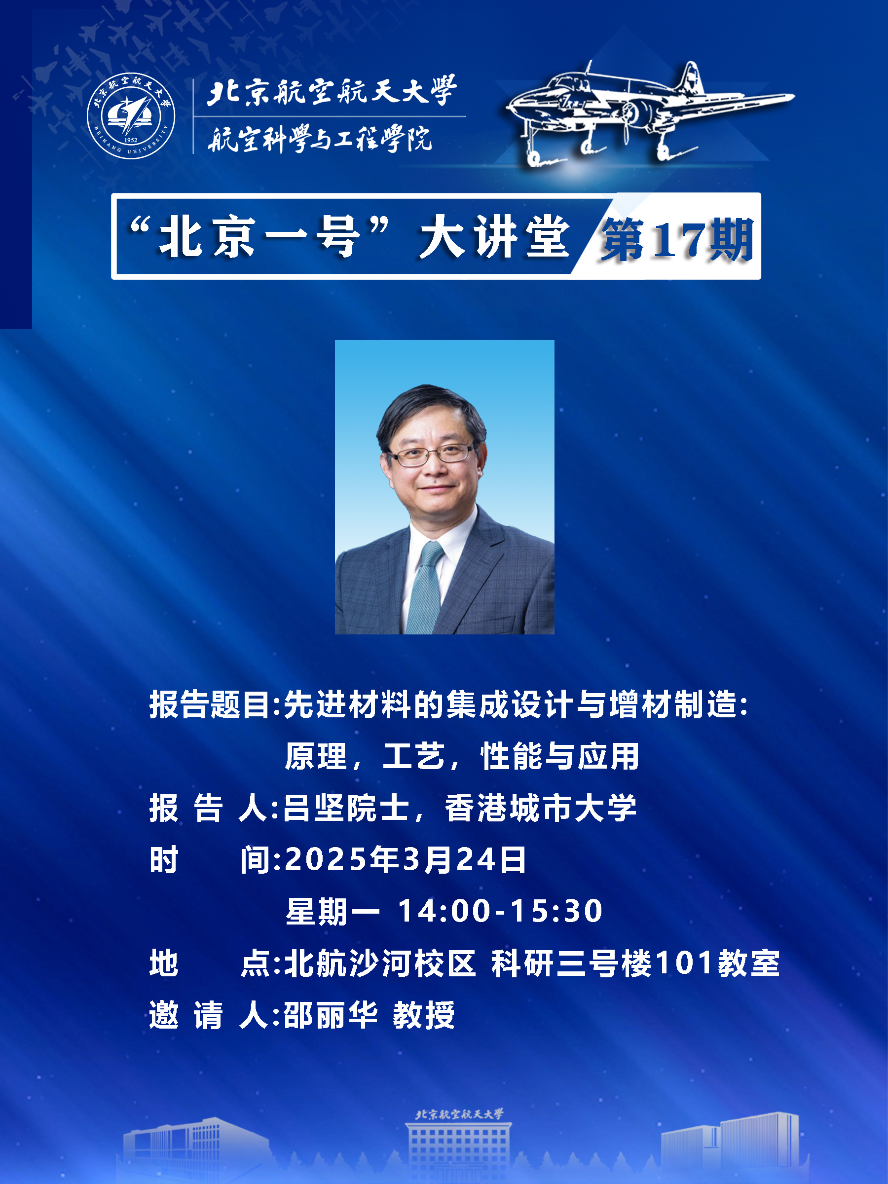 讲座题目:先进材料的集成设计与增材制造:原理,工艺,性能与应用