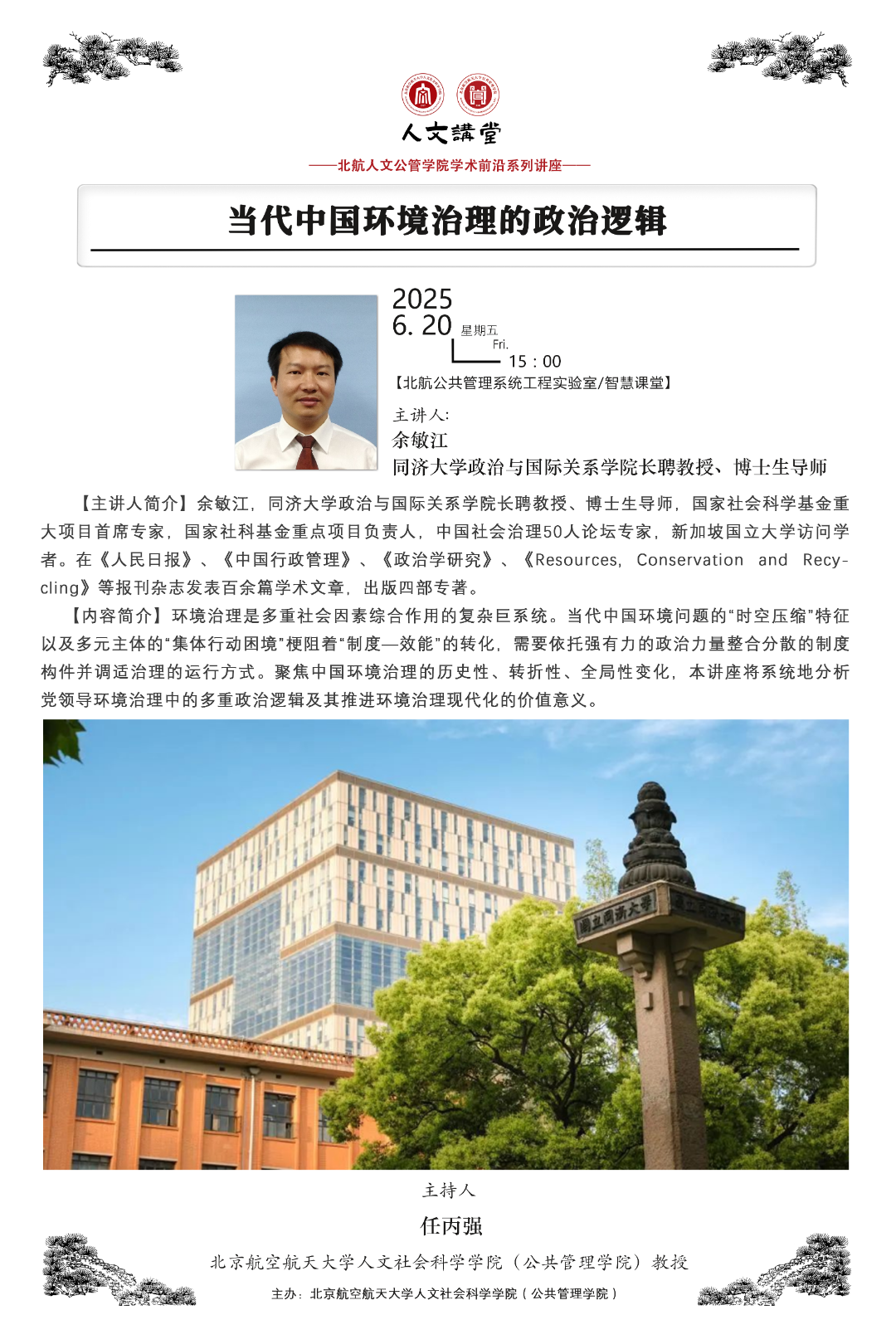 环境治理是多重社会因素综合作用的复杂巨系统。当代中国环境问题的“时空压缩”特征以及多元主体的“集体行动困境”梗阻着“制度—效能”的转化,需要依托强有力的政治力量整合分散的制度构件并调适治理的运行方式。聚焦中国环境治理的历史性、转折性、全局性变化,本讲座将系统地分析党领导环境治理中的多重政治逻辑及其推进环境治理现代化的价值意义。