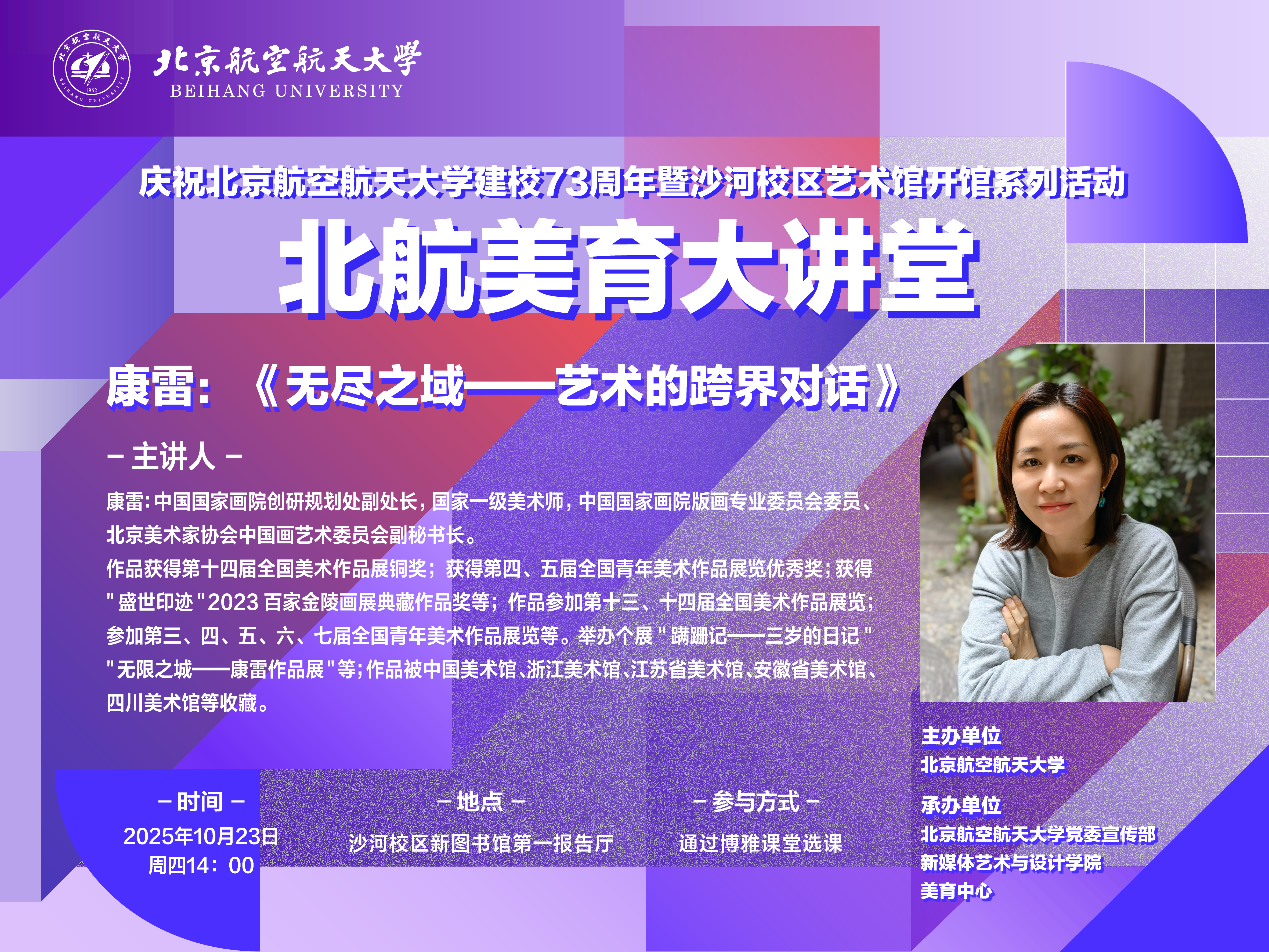 庆祝北航建校73周年暨沙河校区艺术馆开馆系列活动之美育大讲堂|康雷:《无尽之域——艺术的跨界对话》