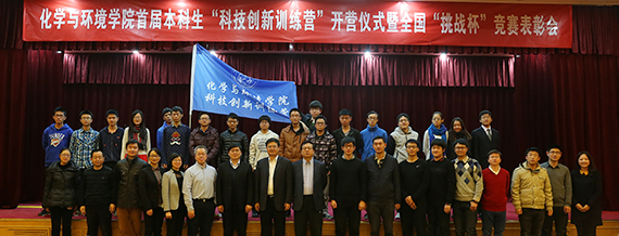 第十五届“挑战杯”国赛化学学院参赛师生于展位前合影